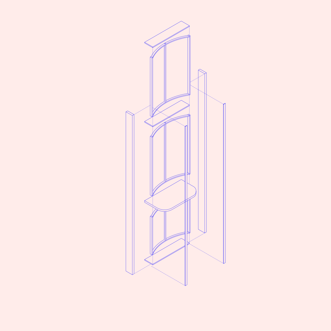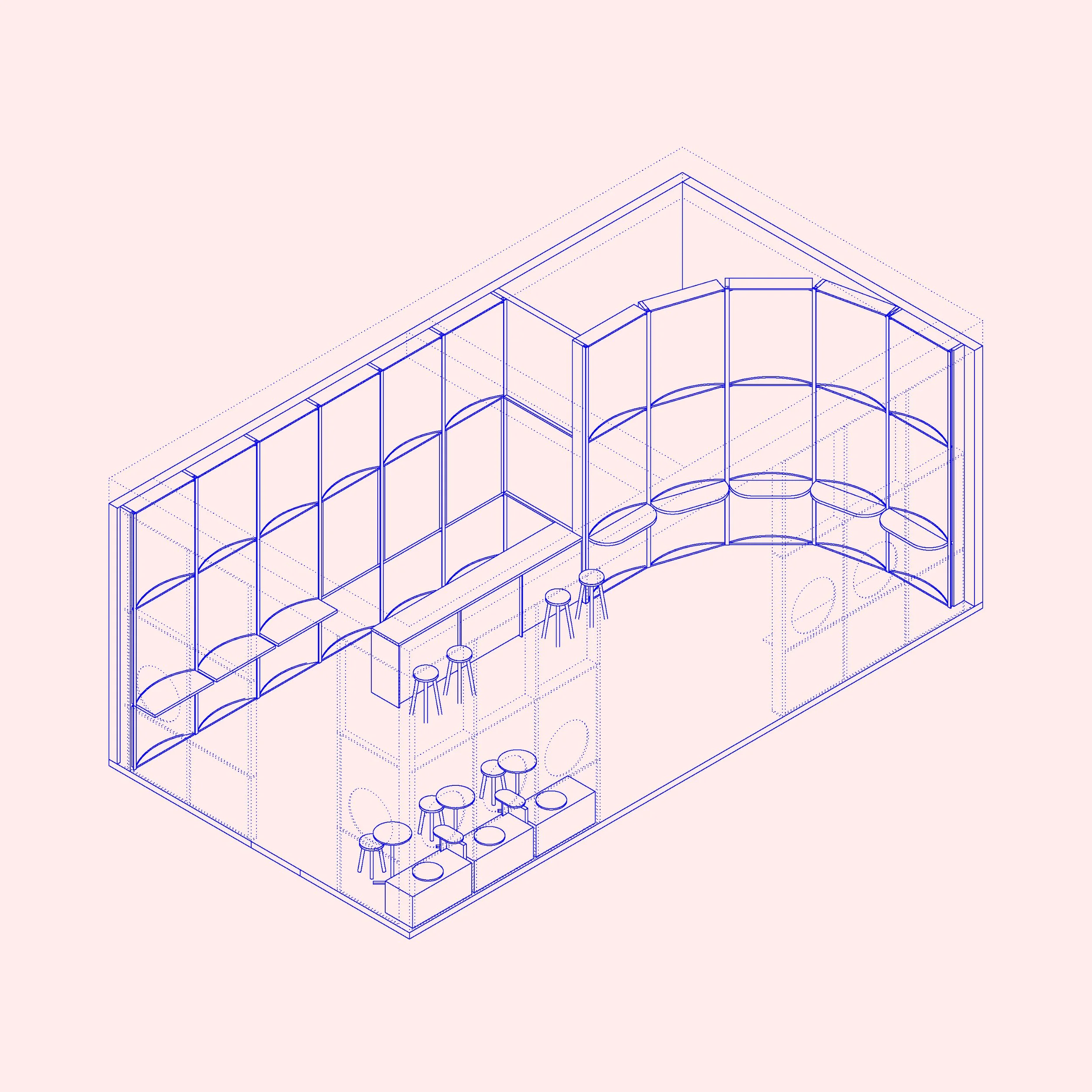 The booth we designed for Etra Caffè is a small architectural structure composed of a sequence of concave niches that, in turn, display the products, host the graphics, frame the videos, and define flows and areas.
