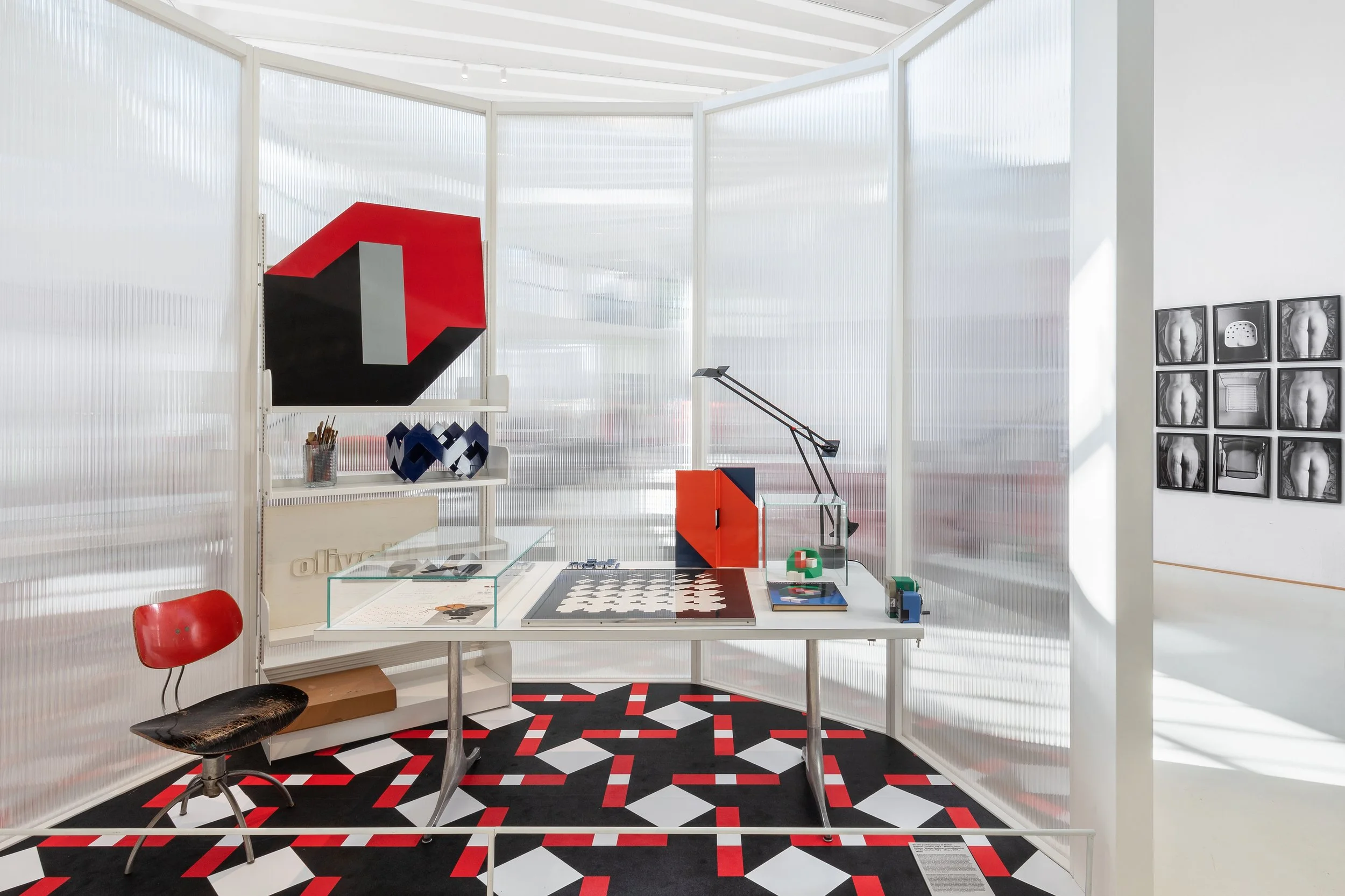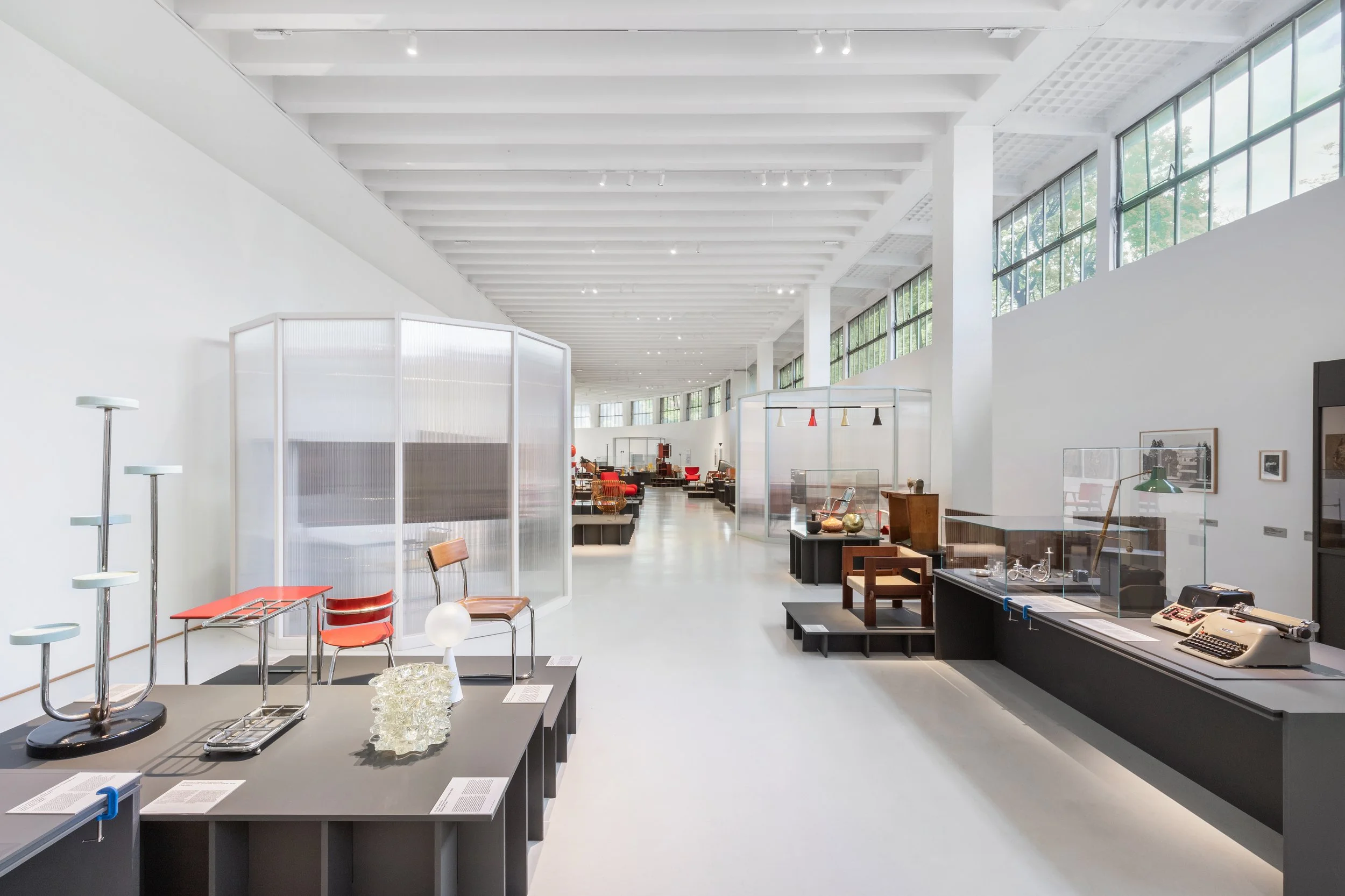 The exhibition design of the Italian Design Museum, curated by Marco Sammicheli, wants to show a large and composite collection through display solutions that evoke the world of production in a cartesian spatial setup.